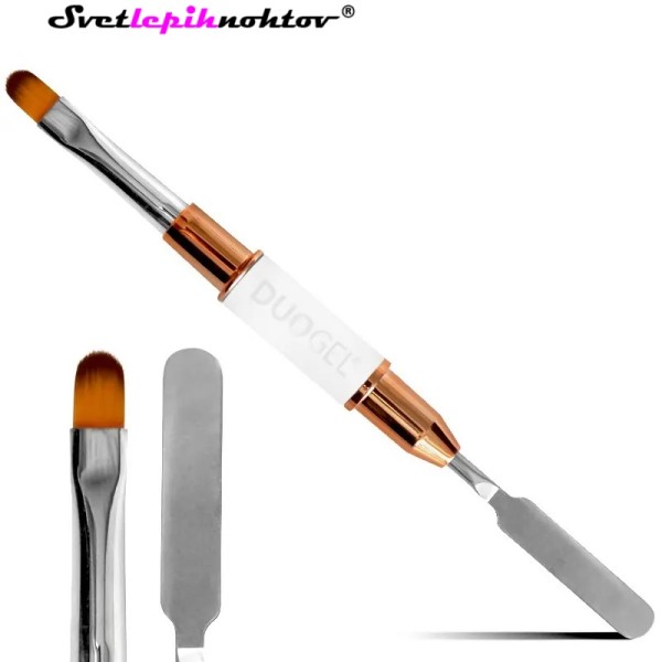 Je obojestranski čopič, ki ima na eni strani OVALNO rezan čopič, velikosti 8, medtem ko ima na drugi lopatko. Priporočamo ga za delo z poli akrilnimi geli, 3D in gostimi gradilnimi geli.